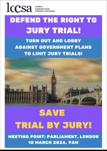 Join us on Tuesday 10 March at 9am to Defend the Right to Jury Trial: Meeting point Parliament, London