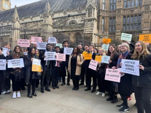 Today members of the London Criminal Courts Solicitors' Association (LCCSA) stood with colleagues from across the The Criminal Bar Association to protest outside Parliament  about a simple but vital principle: justice needs juries.